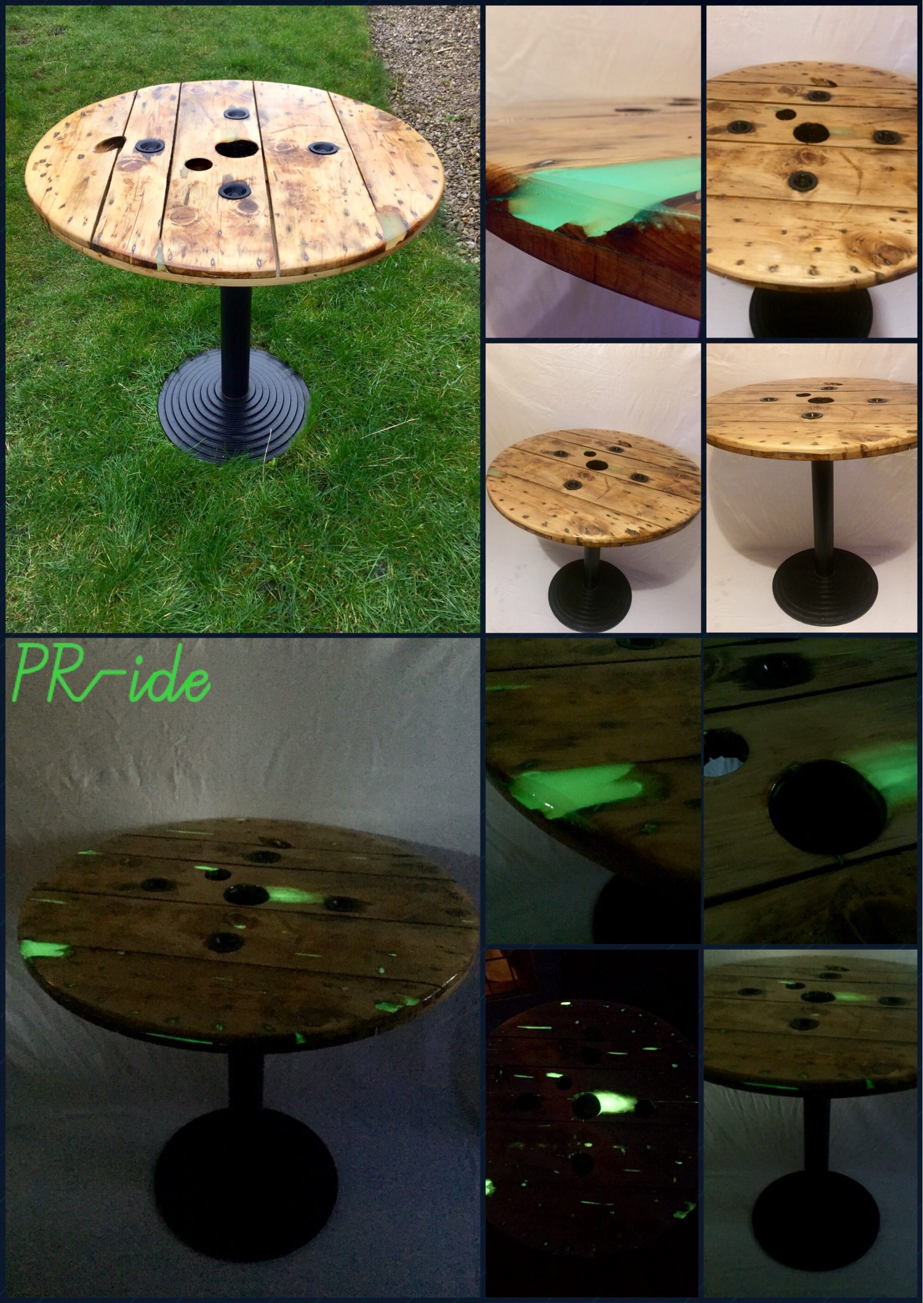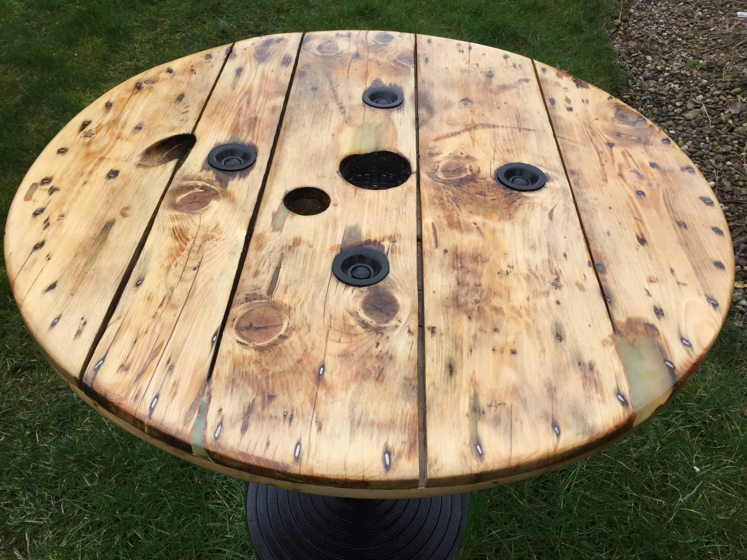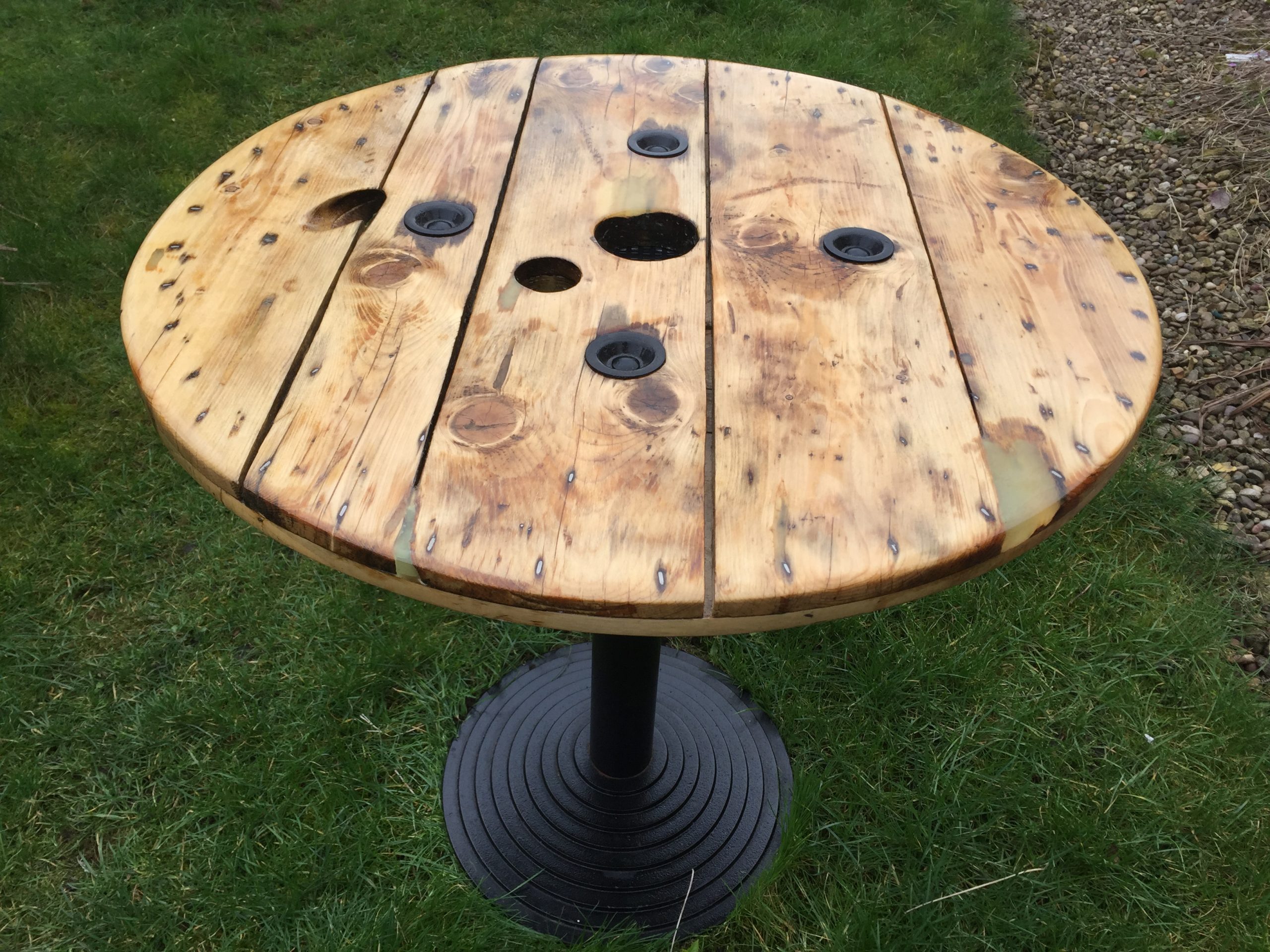 The table was made with an upcycled cable reel.