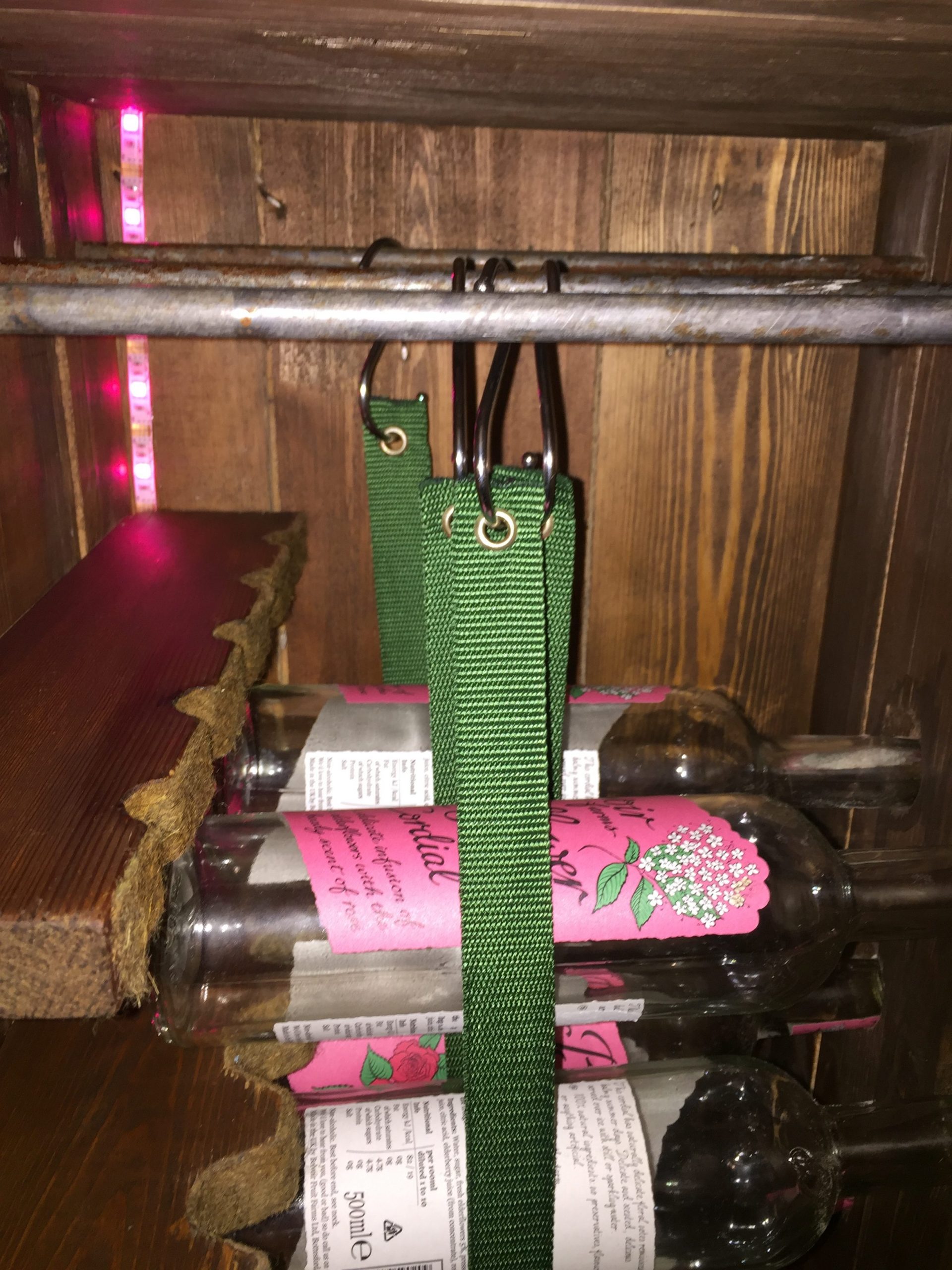 This is enough support for the bottle however green webbing has been fitted for additional support and to finish the look.